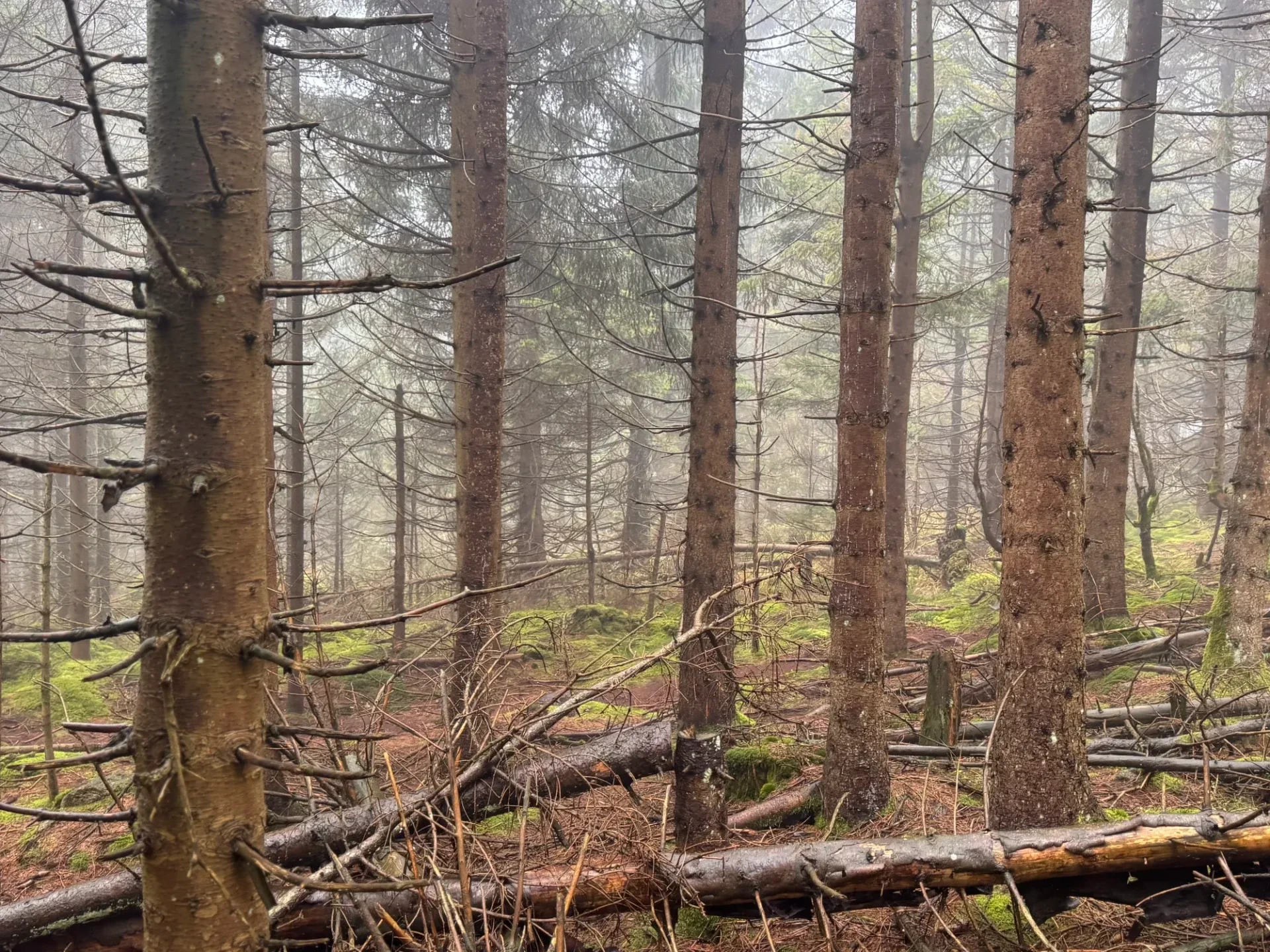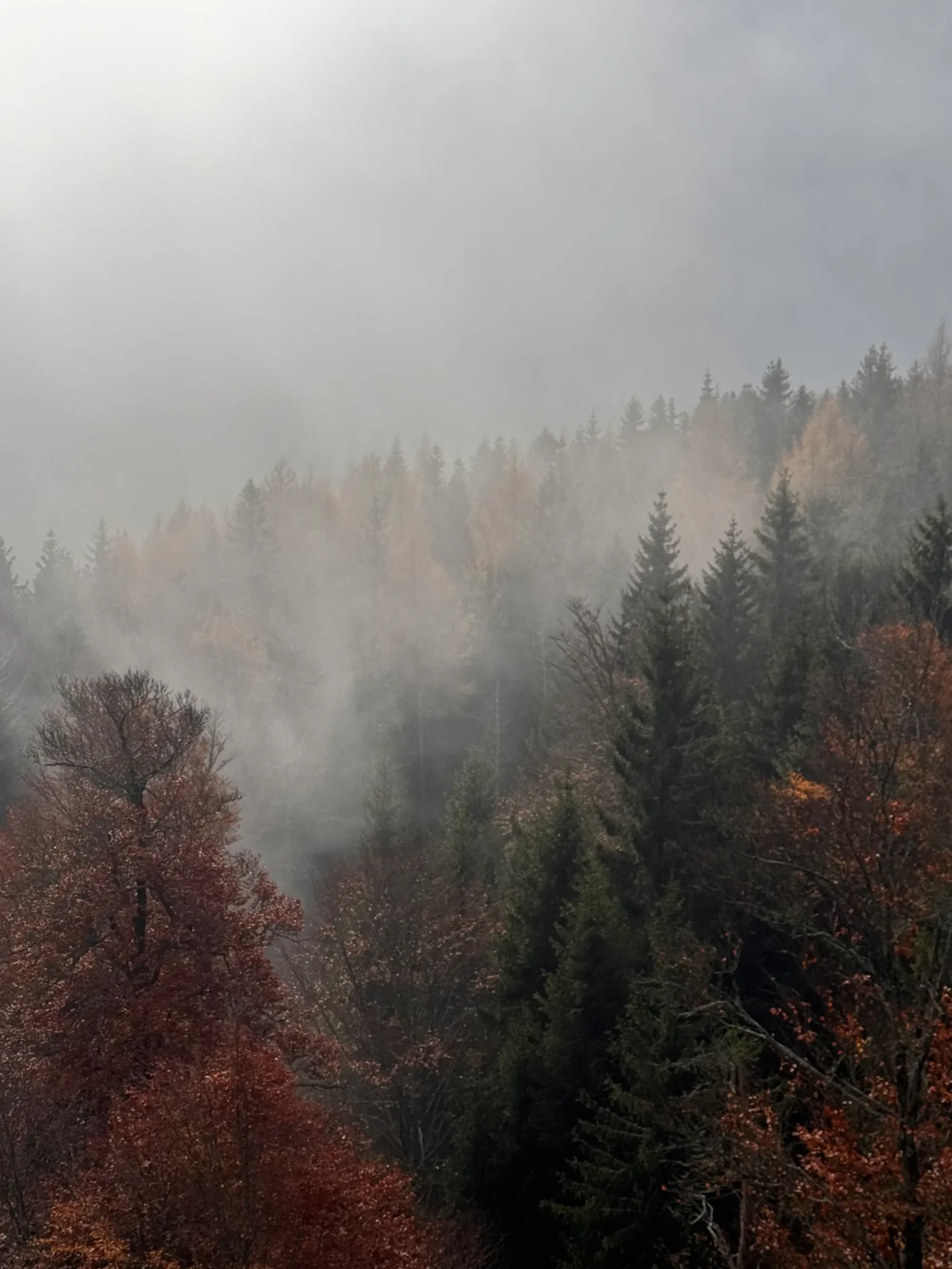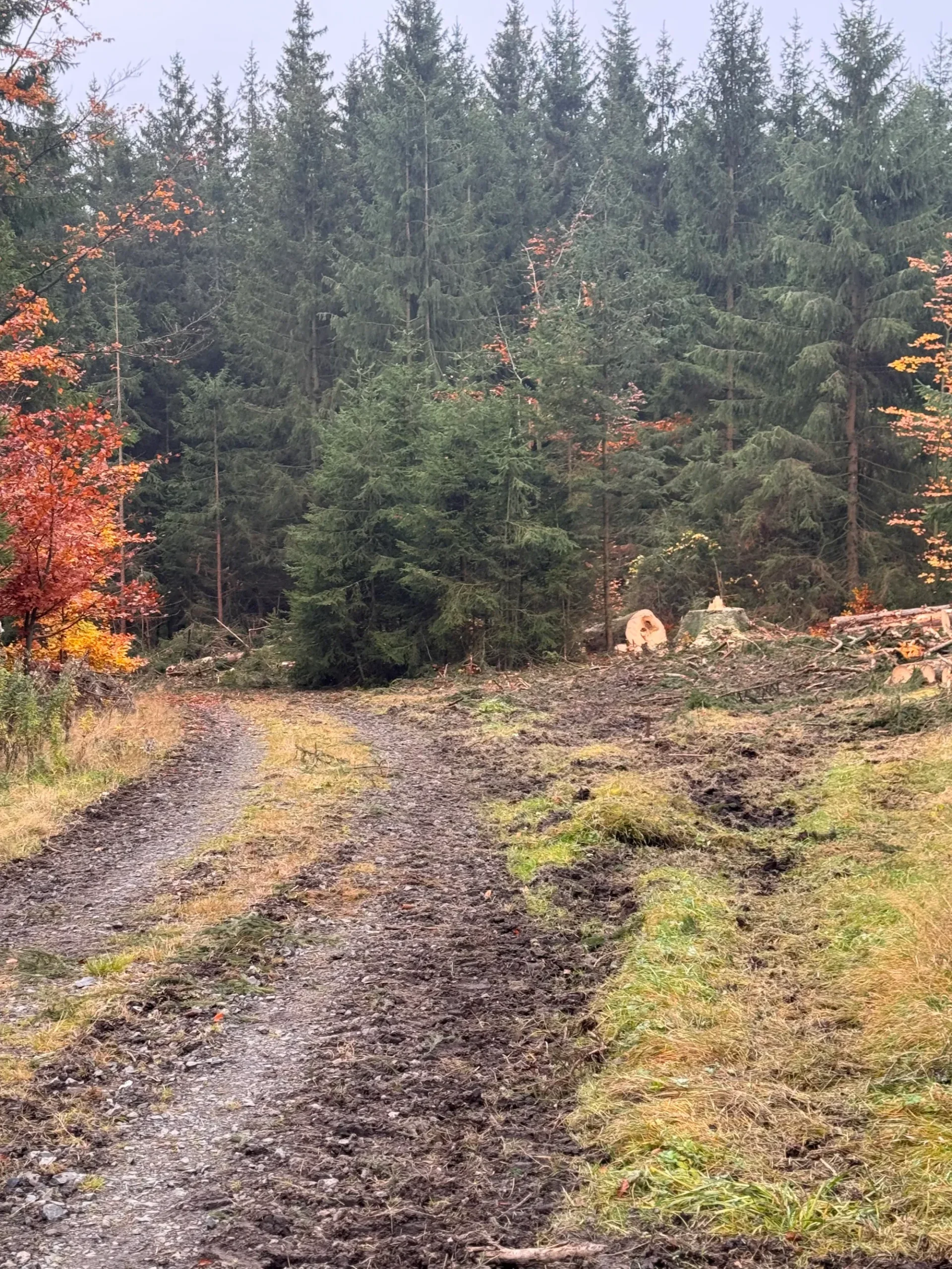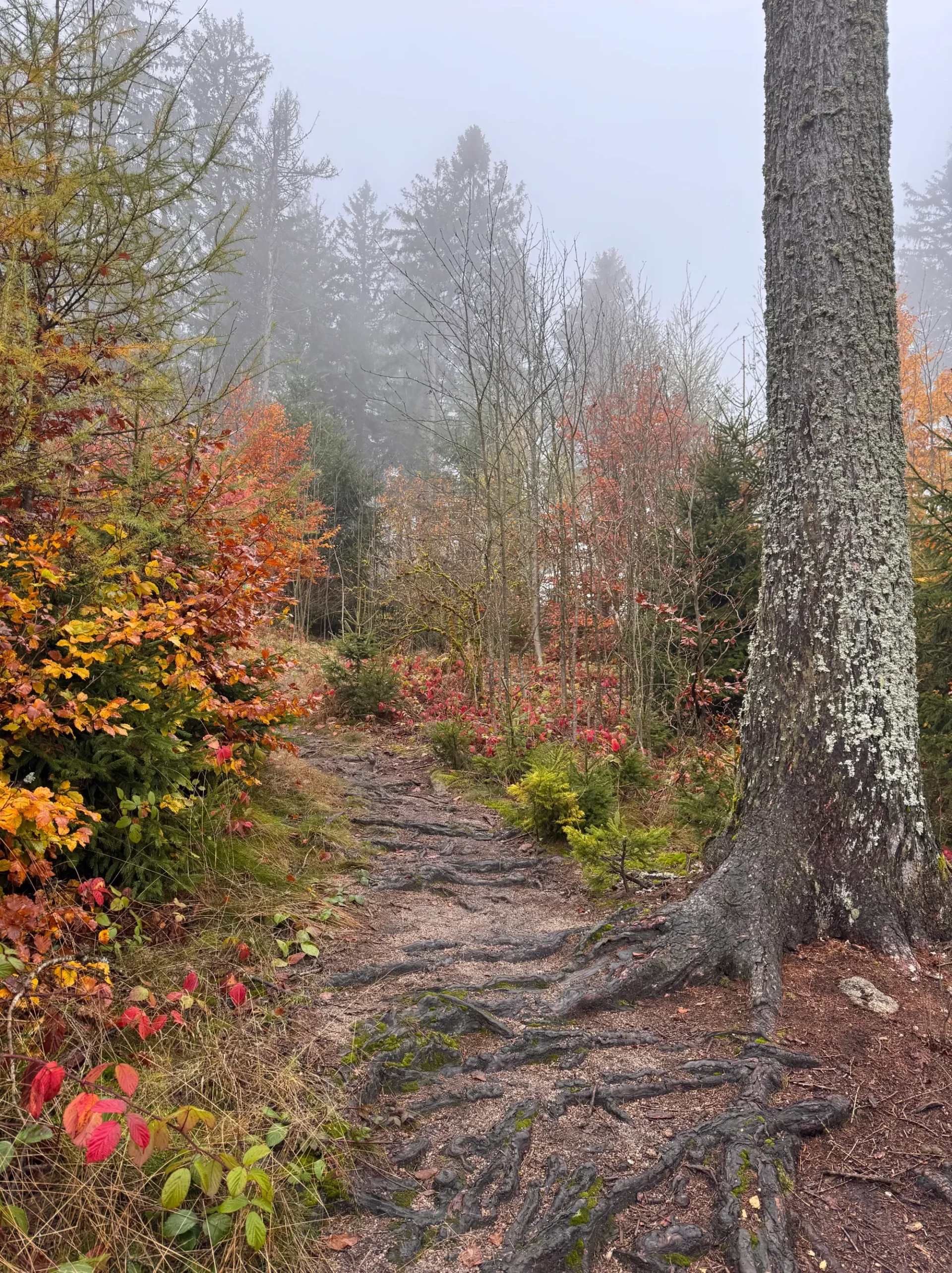 Auf der Hinfahrt wurden wir schon von Nebel begrüßt – viel Aussicht wird es heute also vermutlich nicht geben.