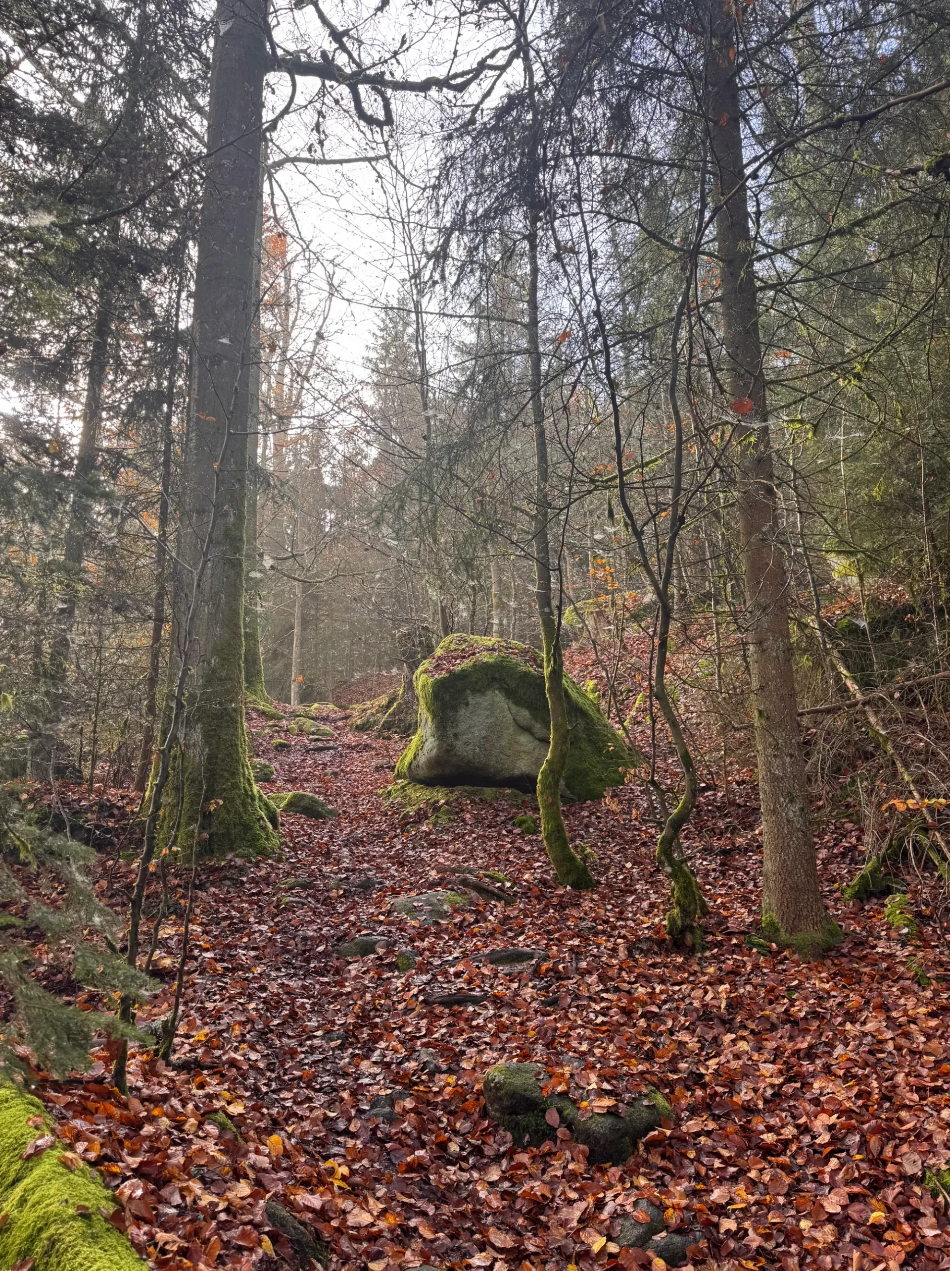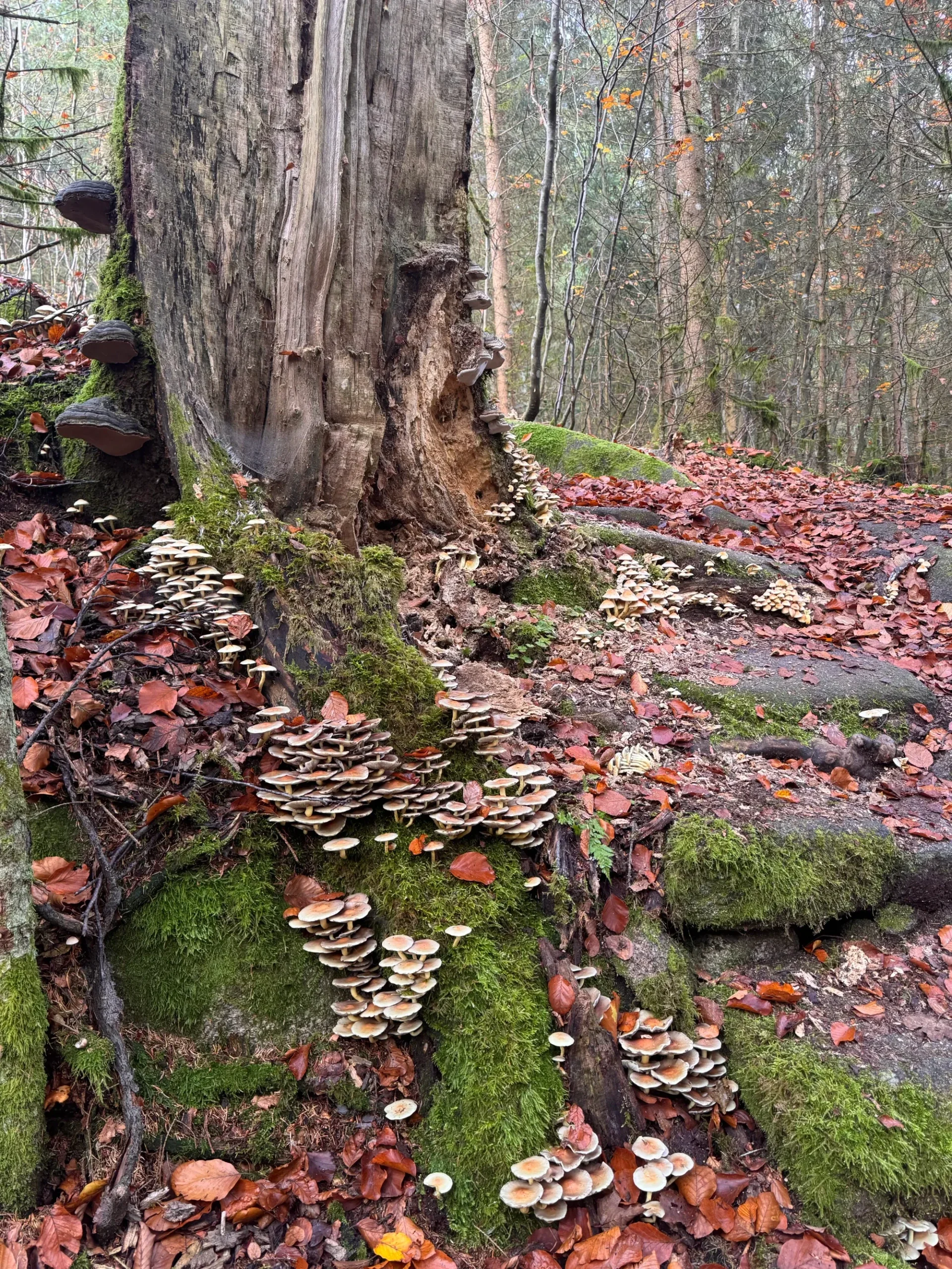 Nach der Rast ging es eine ganze Weile weiter durch den Wald, hier ein paar Impressionen von Wald, Pilzen, Felsen …