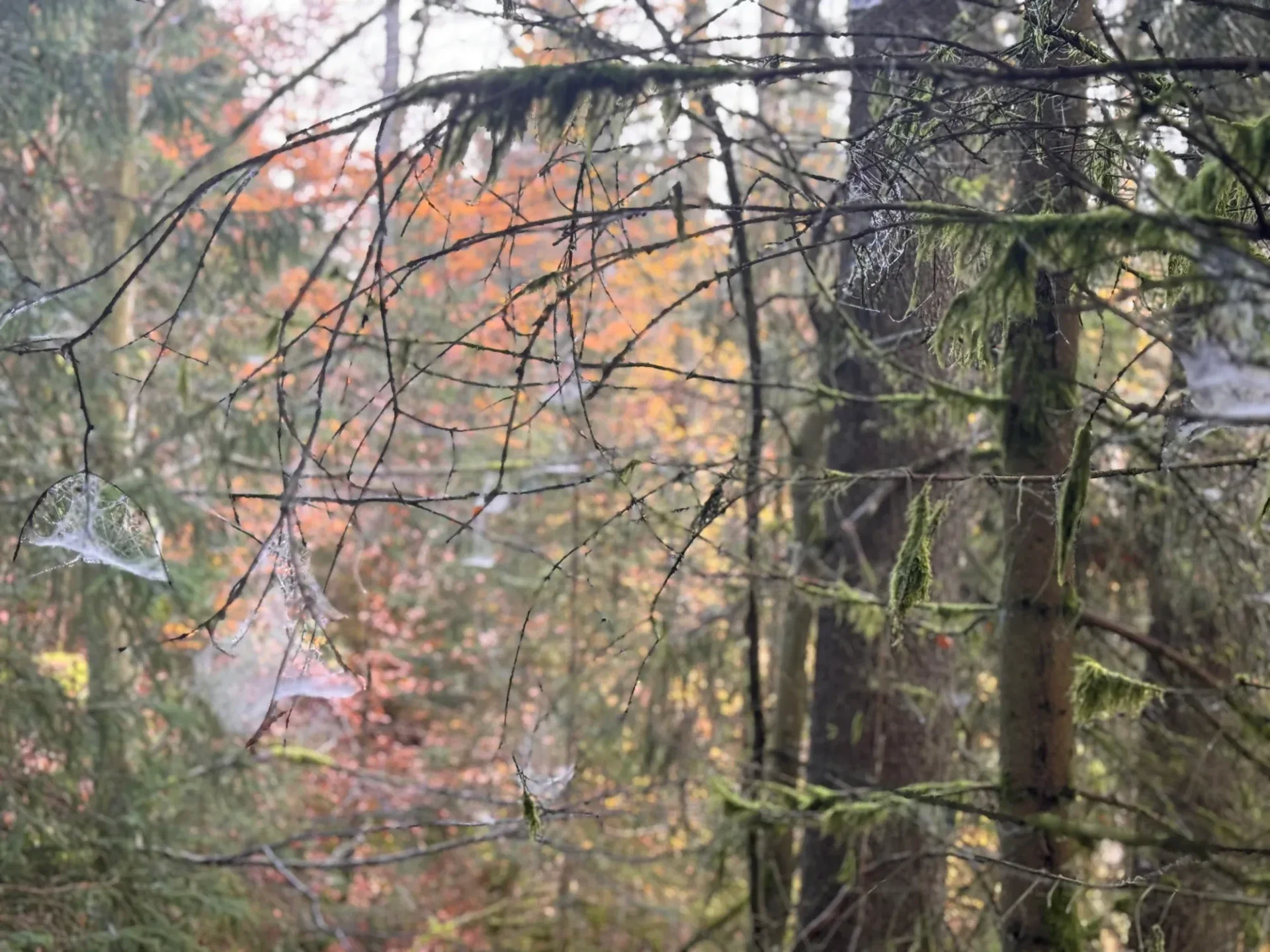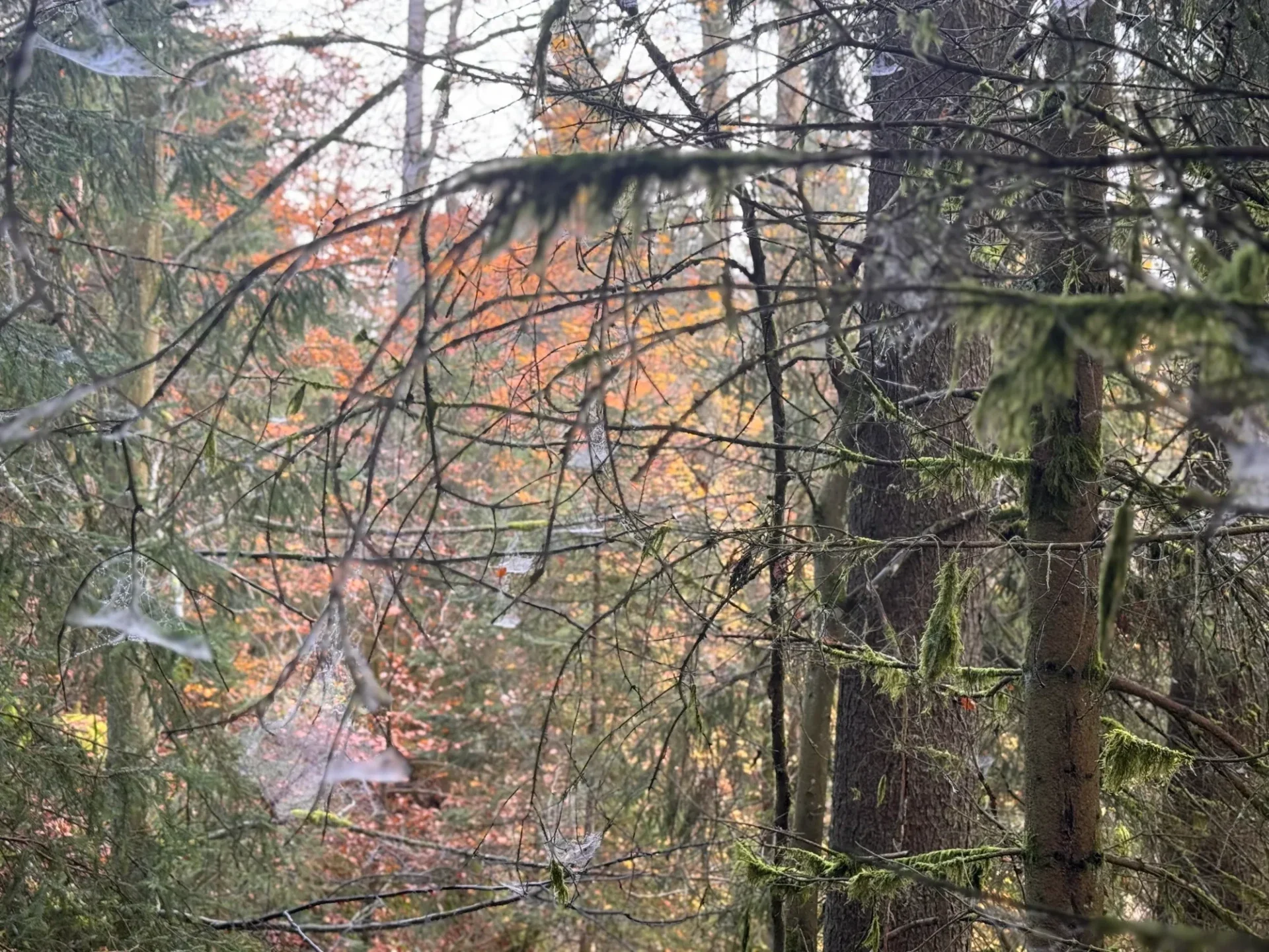 Beim Aufstieg zur Ruine Weißenstein haben wir den idealen Platz fürs trockene Campen gefunden. Außerdem waren alle Bäume voll mit Spinnweben, in denen der Tau hing. Das lies sich leider nicht so gut einfangen – an der Fotoausrüstung muss noch gearbeitet werden!